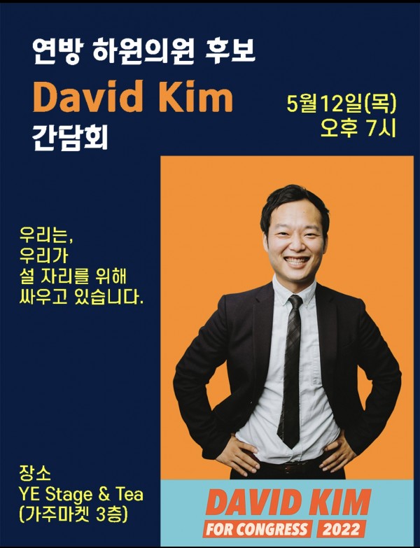 LA코리아타운이 관할 선거구에 포함된 가주연방하원34지구, 연방하원의원 후보 David Kim 간담회가 미국 로스앤젤레스 코리아타운에서 열립니다.