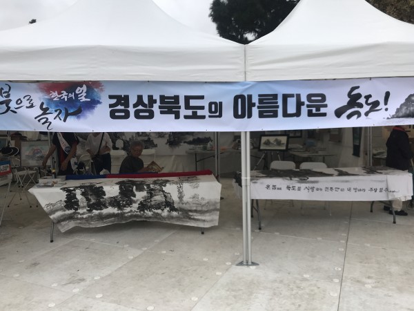 엑스포 부스에는 한국문화를 LA현지에 소개하는 지자체 홍보 부스도 눈길을 끌었다. 그중에서도 경상북도의 독도 홍보관에 전시된 “민족의 영산 백두산 천지” 초대형 수묵화가 단연 인기였다. 이 수묵화는 독도 화가로 널리 알려진 LA동포 한국화가 권용섭 화백의 작품이다.