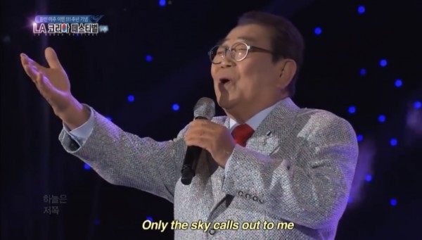 송해 선생의 해외무대는 특히 2014년 4월 12일 미국 로스앤젤레스 LA 메모리얼 콜로세움에서 개최된 KBS 열린음악회(LA-K팝 페스티벌)에서 였다. 재미동포와 미국시민들이 함께 한 총6만명 군중이 운집한 가운데 송해 선생이 깜짝 사회자로 출현 우렁찬 갈채를 받았다. 무대는 2PM, 샤이니, CN 블루, 씨스타, 인피니트, 다이내믹 듀오, 걸스데이, 백지영, 박정현, 김태우 등 한국 K팝 스타들을 비롯해 '국악소녀' 송소희, '트로트 스타' 설운도, 등이 연달아 나서 환호성이 이어졌다. 그래도 그중에서도 최고의 백미는 황해도 출신의 원로인 송해가 부르는 “타향살이”, “불효자는 웁니다”에 올드타이머들은 눈시울을 붉혔고, 청소년들도 이 전통가요를 어떻게 알았는지따라 부르는 모습을 보였다.