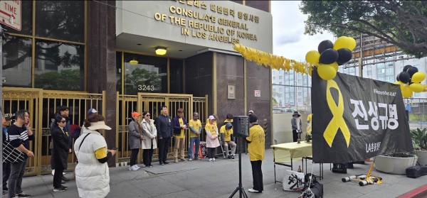 세월호 참사 10주기를 기억하고 희생자들을 추모하는 집회가 13일 오전 11시 로스앤젤레스 대한민국 총영사관 앞에서 열렸다.