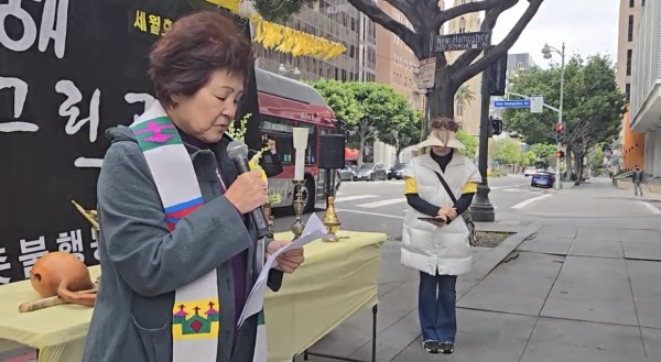 ‘LA촛불행동’주최로 열린 이 집회에는 김요한 신부(성공회), 묘경 스님, 그리고 박신화 목사가 종교계 인사로 참석했다.