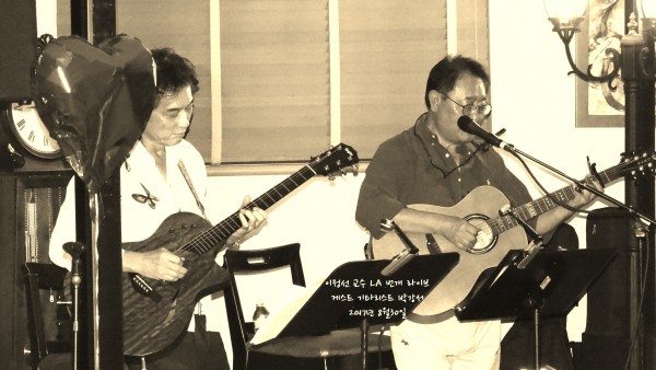 이정선 선생이 직접 기타와 하모니카를 연주하고 불러주는 주옥의 명곡을 들으며 LA동포들은 오랜만에 젊은시절의 회상에 젖고, 팜트리 길게 늘어선 라성의 깊고 푸른밤은 깊어만 갔다.