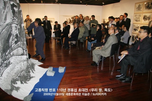 행사를 치르면서 경험한 에피소드 한가지를 권화백은 이렇게 말한다. “많은 인사들이 참석해 인사와 축사 등으로 예정시간을 넘기니 객석에서 배가 고프다며 식사를 하자는 볼맨 소리가 점점 커졌어요. 그래도 준비 된 9중창단 공연을 강행하다가 곡이 단축된 상황에서 제가 보여 줄 '권용섭의 40초 수묵속사퍼포먼스' 차례를 기다리고 있었습니다. 사회자가 염려스럽게 다가와 "화백님의 퍼포먼스는 지금 못하겠으니 나중에 해요." 당황스럽기도 해서 제가, "40초도 못 참을것 같아요?라"고 되물어 봤더니 말하길 오신분들 항의가 심각하다고 해서 할 수 없이 '금강산도 식후경'을 택했습니다.