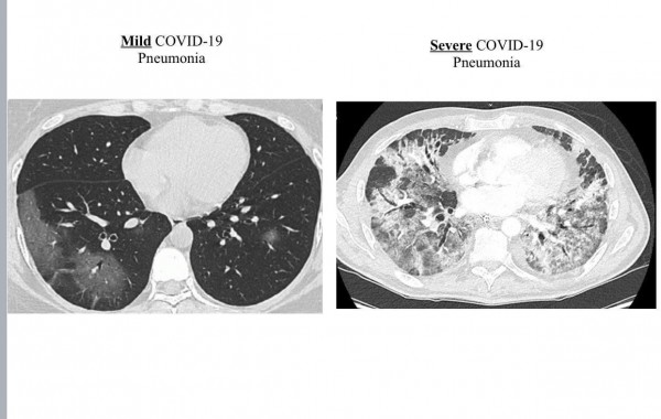 김태형 연구원은 “왼쪽은 ‘경증’환자의 폐고 오른쪽 사진은 코로나 ‘중증’감염 환자 폐”라면서, “전 세계가 다양한 백신을 응급승인하고 1억 명 이상 백신 접종을 진행했는데 백신 접종후 COVID-19에 감염되더라도 환자들의 폐는 거의 대부분 왼쪽 사진과 같았다...말로만 듣던 백신의 효과를 이렇게 직접 눈으로 보니 정말 대단한것 같다...코로나 백신은 감염 예방도 중요하지만 이처럼 중증도를 낮추는 것도 매우 중요한듯 하다”면서, 중증도를 낮추는 백신 효과의 중요성을 환기 시켰다.