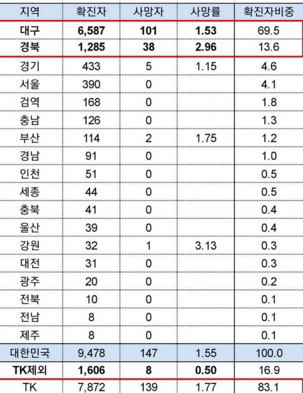 * 대구경북 제외하면 사망률 0.50%