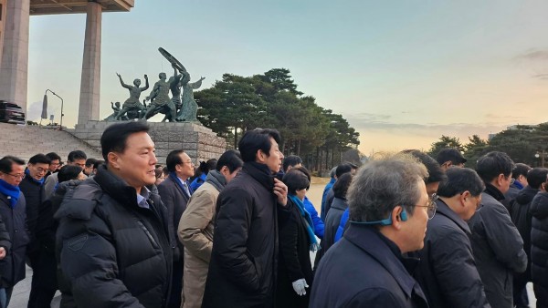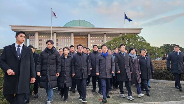 민주당 국회의원들…밤새 노숙을하며 국회를 지켜준 국민들께 감사 인사