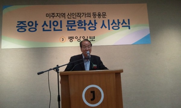미국속에서 한국문학이 꽃필수 있기를 기대합니다. 배정웅 시인님과 이형권 교수님등 훌륭한 심사위원들을 모시고 중앙 신인문학상 시상식을 치루게 되어 대단히 기쁩니다.