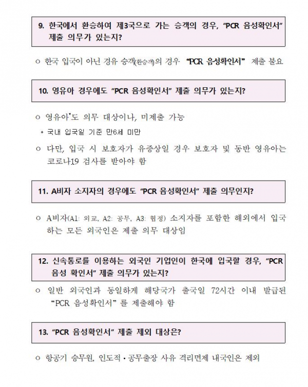 [한국입국] 한국 입국 ‘외국인’ PCR 음성확인서 제출 의무화