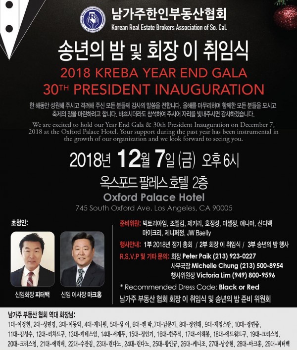 미국 캘리포니아주 ‘남가주한인부동산협회’는 지난 12월 7일 LA 한인타운 옥스포드팔레스 호텔에서 제30대 회장 취임식 및 2018 송년의 밤 행사를 개최했다.