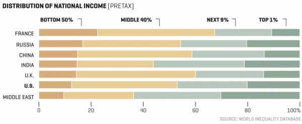 분석 수치에 의하면, 미국 근로자의 하위 90%는 그들의 산업경제화 된 경쟁상대국들, 일례로 훨씬 자유가 적은 중국보다도 상대적 으로 더 적은 몫인 쥐꼬리 소득을 가지고 집에 오는 형편을 보여 주고있다.