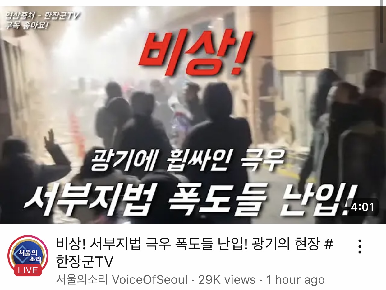 윤석열 지지 폭도들은 구속영장이 발부됐다는 소식을 듣자 격분하며 법원을 공격하기 시작했다. 법원 판결에 불복한 시위대가 사법부를 공격한 것은 사상 초유의 일이다.
