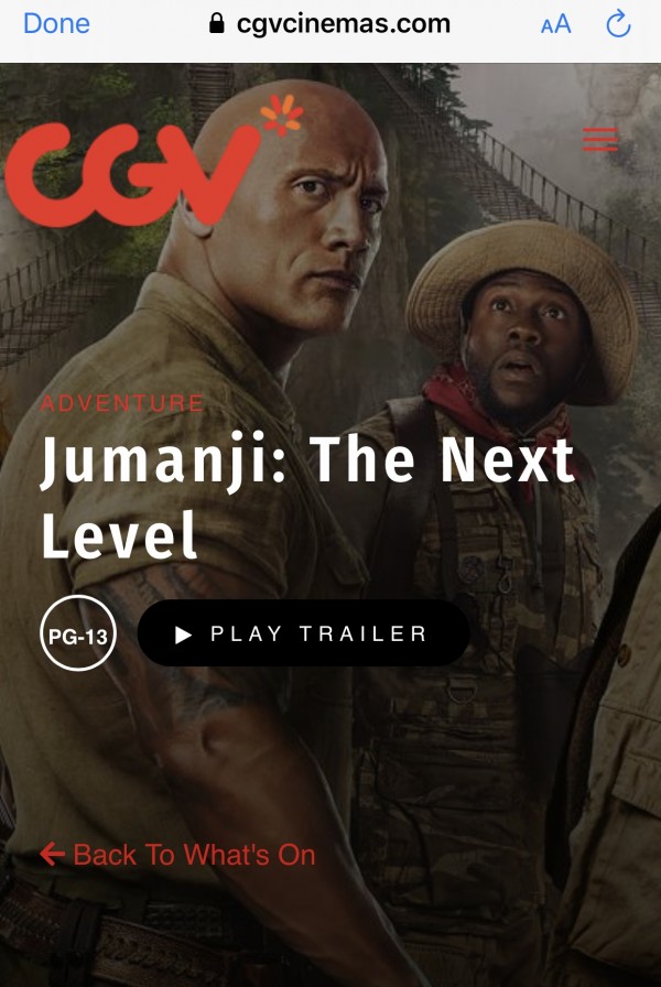 12월 13일 미국 LA와 부에나팍 CGV 영화관서 “쥬만지 3탄을 개봉한다. 오래 지속된 시리즈 영화로 다시 세번째로 돌아온 ‘쥬만지’ Jumanji - Next Level은 판타지 영화물로 전편의 대박에 이어 올해 또 다른 박스 오피스 스매시 기록에 대한 높은 기대로 새롭게 작품을 각색하여 가족 친화적인 작품으로 돌아왔다. 결국 이번달 개봉 예정인 “스타 워즈” Star Wars - The Rise of Skywalker 와 흥행을 놓고 격돌하는 셈이다. 쥬만지 는 미전역 12월 개봉 첫주에 박스오피스 약 $4천3백만불 티켓팅 수익을 예상한다.