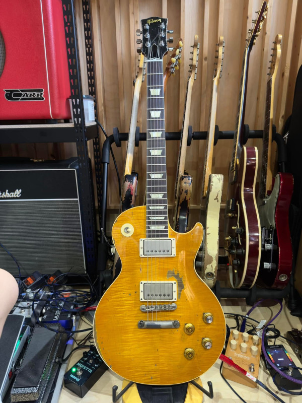 앞, “Gibson Kirk Hemmett ‘Greeny’ Les Paul Custom Shop Murphy Lab Aged.
