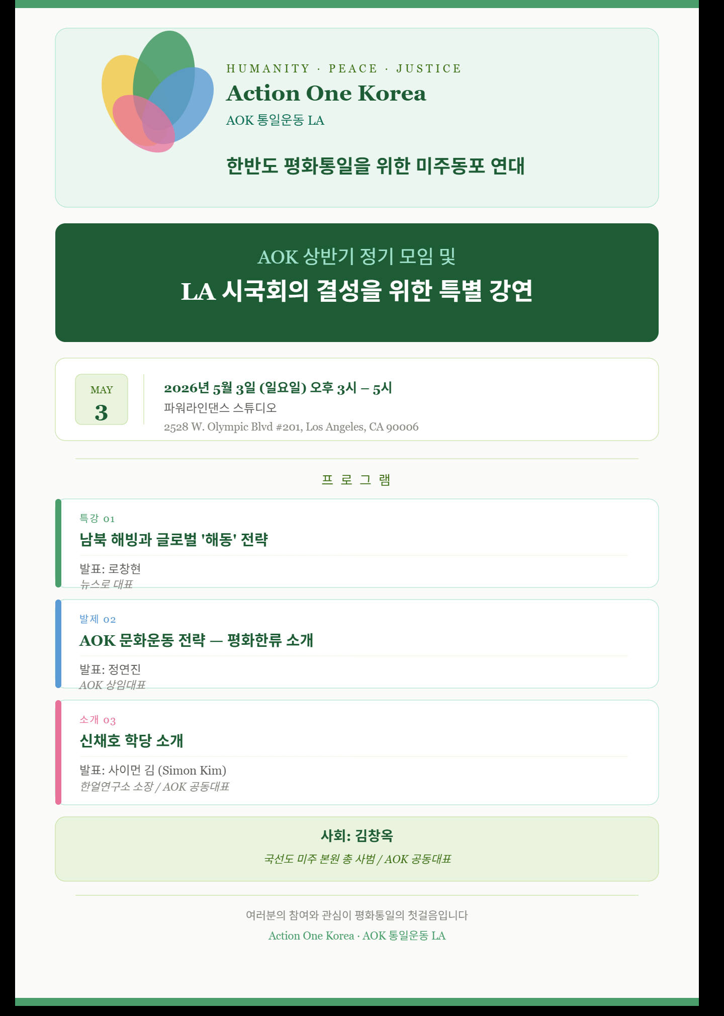 *미국 AOK - 2026년 상반기 정기모임에 모십니다