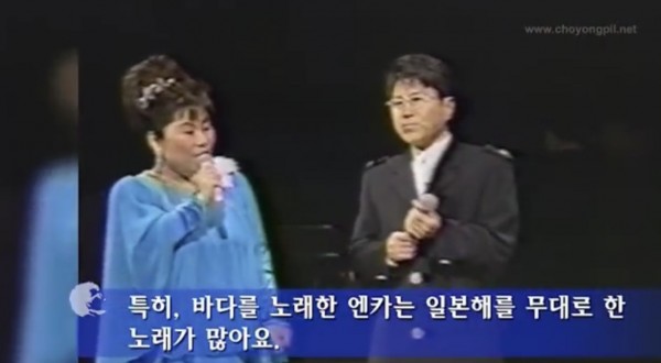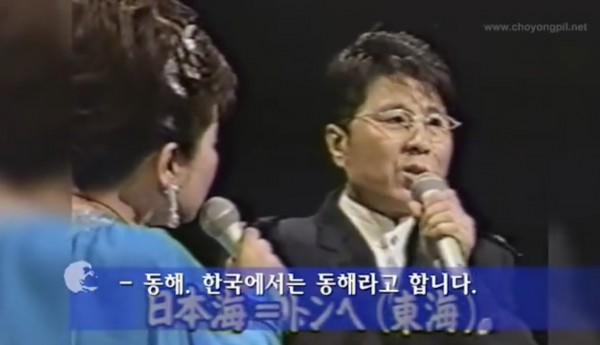 동영상에서 8:55초 부터 보면 텐도우・요시미 일본가수가 “...사구의 맞은편에 ‘일본해’가 쫙 펼쳐져 있어요..특히 바다를 노래한 앤카는 ‘일본해’를 무대로 한 노래가 많아요”라고 말하자, 가왕 조용필 선생은 한국에서는 “동해” 東海 로 불러왔다면서 응대한다.