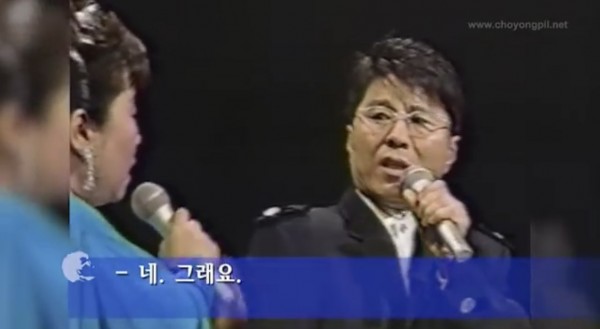 조용필: “그렇군요 (상대방을 배려, 일단 긍정구 yes), 한국은 남쪽, 여러분도 알고 계시듯이 ‘목포의 눈물’ 이나 ‘가슴 아프게’라든지...”