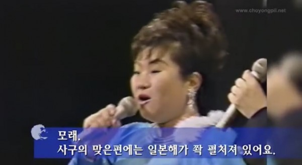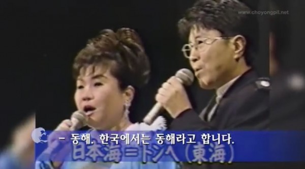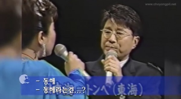 동영상에서 8:55초 부터 보면 텐도우・요시미 일본가수가 “...사구의 맞은편에 ‘일본해’가 쫙 펼쳐져 있어요..특히 바다를 노래한 앤카는 ‘일본해’를 무대로 한 노래가 많아요”라고 말하자, 가왕 조용필 선생은 한국에서는 “동해” 東海 로 불러왔다면서 응대한다.