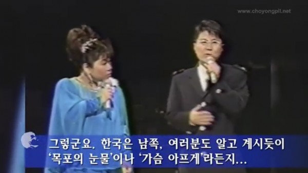 조용필: “그렇군요 (상대방을 배려, 일단 긍정구 yes), 한국은 남쪽, 여러분도 알고 계시듯이 ‘목포의 눈물’ 이나 ‘가슴 아프게’라든지...”