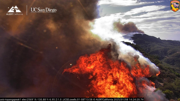 현재시각 캘리포니아 토팡가 룩아웃 트레일헤드 근처에서 본 팔리세이즈 산불 화재의 미친 듯한 광경