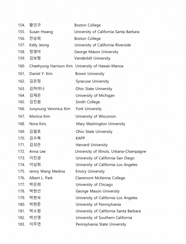 시국선언문: 한국의 현실과 미래를 걱정하는 미주 교수 및 연구자