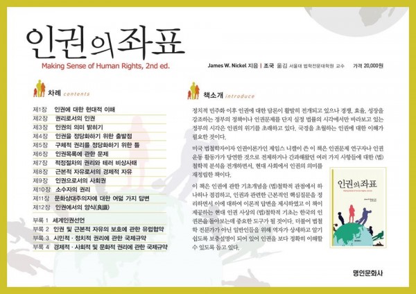 안녕하십니까, 오늘은 출간한 지 조금 된 번역서 <인권의 좌표>(James W. Nickel 지음, 조국 옮김)와 관련하여 이야기 드리고자 합니다.