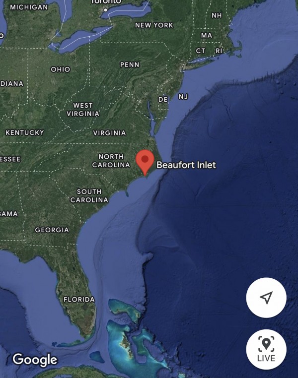1718년 해적선장 검은구렛나루 수염 (Blackbeard)은 현재의 미국 노스-캐롤라이나주 카테렛 카운티(Carteret County)에 소재하는 ‘뷰포트 인렛’(Beaufort Inlet)에 그의 배를 정박시켰고, 수개월 후 Blackbeard는 Pamlico Sound에서 영국 해군과의 전투에서 사망했으며, 이 해적선은 파괴 되었다.